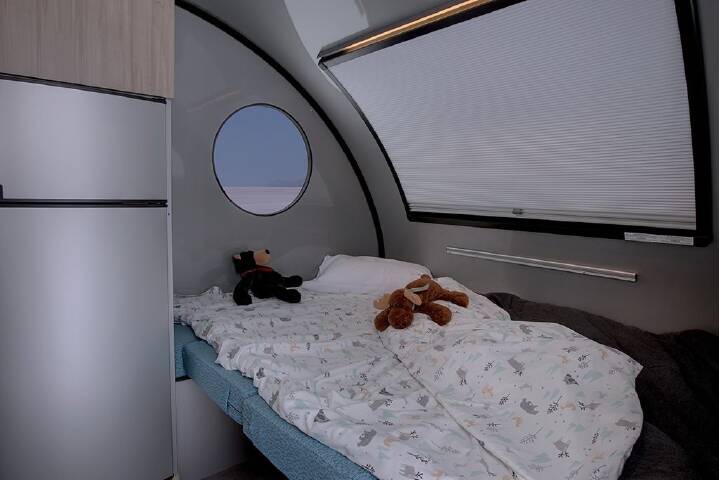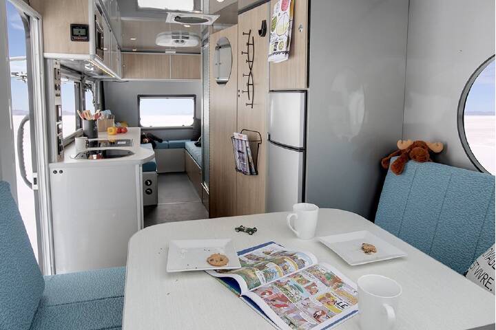 This trailer as just about everything and is under 3000lbs.Dinette that can seat 8,3 Queen bedsFull and separate showerFull RV size FrigOutside table that is attached to the RVSolar panelsDouble propane tanksWindows all aroundEasy towingLots of storage