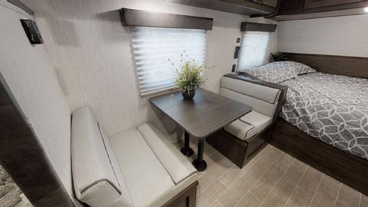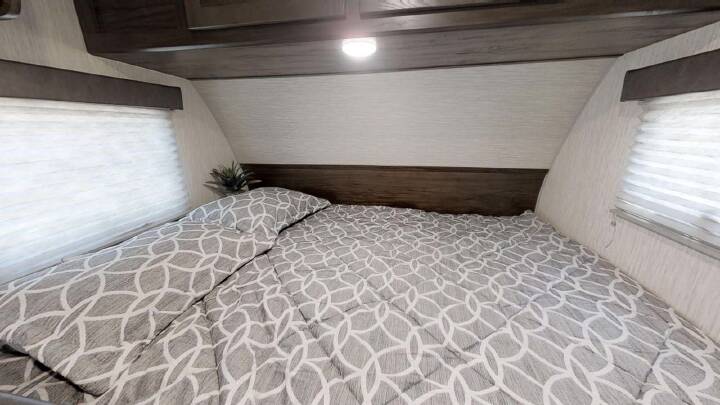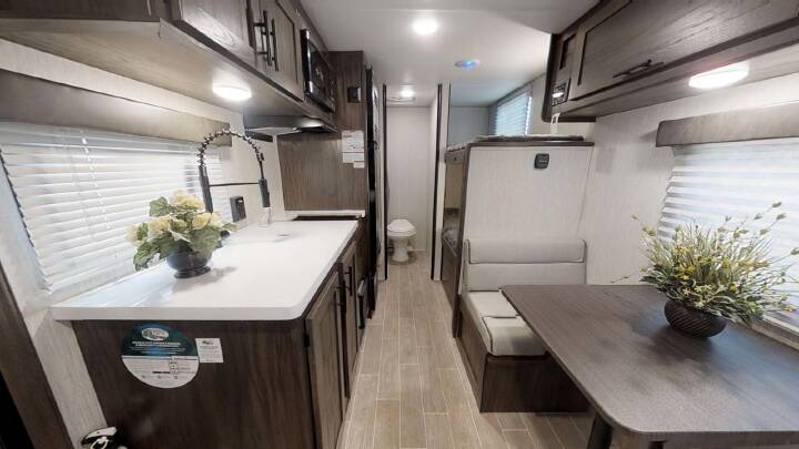 This travel trailer rental is perfect for a family, with its ample sleeping and ultra lite design and that it is towable with a small SUV. With a large Queen bed and small dinette; this unit can sleep up to 5 people. Trailer GVWR is 3877 lbs.The details on this site, including floor plans and specifications, are representative of an RV category and are intended as a guide. The details provided cannot guarantee exact specifications and layouts. While we try to accommodate our customers as best we can, we reserve the right to substitute similar or higher-rated vehicles. However, we will continue to offer the best available equipment for the category selected.
