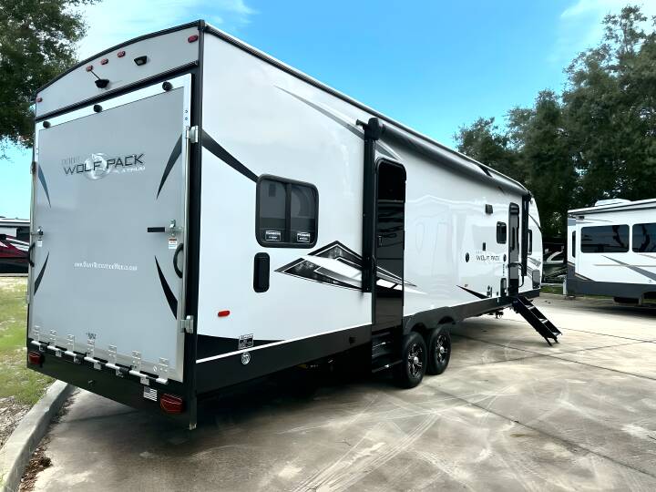 2022 CHEROKEE WOLF PACK, 25PACK12+, Travel Trailer TH, Air Conditioning (BTUs) (15000),Air Conditioning (Standard),Air Conditioning Prewiring (Prewiring) (Yes),Air Conditioning Type (Automatic),Awning (Standard),Awning Length (ft) (21),Awning Length (m) (6.4),Back-Up Camera (Prewiring) (Yes),Bathroom (Standard),Bathroom Flooring Type (Vinyl),Bathroom Location (Center),Bathroom Medicine Cabinet (Standard),Bathroom Medicine Cabinet Location (Center),Bathroom Mirror (Standard),Bathroom Mirror Location (Center),Bathroom Sink (Standard),Bathroom Sink Location (Center),Bathroom Vent / Fan System (Standard),Bathroom Vent / Fan System Location (Center),Battery (Standard),Battery Power Converter (Yes),Bed Spreads (Standard),Beds (Standard),Black Water Holding Tank Gauge (Standard),Bluetooth® Audio (Yes),Body Material (Aluminum),Brakes (Standard),Cable Prewiring (Prewiring) (Yes),Carbon Monoxide Detector (Standard),Construction (Standard),Curtains / Shades (Standard),Door Type (Plastic / Glass),Doors (Standard),Emergency Exit(s) (Standard),Exterior Flood Lights (Standard),Exterior Ladder (Standard),Exterior Patio / Deck (Standard),Exterior Patio / Deck Location (Rear),Exterior Plugs (Standard),Exterior Shower (Standard),Fireplace (Standard),Freeze Proof Insulation (Standard),Fresh Water Holding Tank Gauge (Standard),Front Brake Type (Not Applicable),Generator (Optional),Gray Water Holding Tank Gauge (Standard),Ground Fault Plugs (Standard),Heat Prewiring (Prewiring) (Yes),Heater (BTUs) (35000),Heater (Standard),Heater Type (Automatic),Interior Decor (Standard),Interior Wood Finish (Yes),Kitchen / Living Area (Standard),Kitchen / Living Area Flooring Type (Carpet / Vinyl),Kitchen Location (Center),Kitchen Table Configuration (U-shaped Dinette),Layout (Oven / Stove),Leveling Jack Type (Front Power / Rear Power),Leveling Jacks (Standard),Living Area Location (Center),Master Bedroom (Standard),Master Bedroom Door Style (Conventional Door),Master Bedroom Flooring Type (Vinyl),Master Bedroom Location (Front),Master Bedroom Mirror Doors (Yes),Master Bedroom Shades / Curtains (Yes),Max Sleeping Count (8),Microwave Oven (Standard),Mobile App Instrumentation (Yes),Number Of Bathrooms (1),Number Of Convertible / Sofa Beds (2),Number Of Emergency Exits (1),Number Of King Size Beds (1),Number Of Oven Burners (3),Number Of Queen Size Beds (1),Number Of Radios (1),Number Of Sofas (2),Number of Awnings (1),Number of Doors (2),Number of Slideouts (1),Other Exterior (Optional),Oven / Stove (Standard),Overhead Fan (Yes),Paint (Standard),Pass-Thru Storage (Standard),Power Retractable Awning (Yes),Power Retractable Slideout (Yes),Power Vent Fan (Standard),Prewiring (Prewiring) (Standard),Propane Alarm (Standard),Propane Tank Cover (Standard),Propane Tank Gauge (Standard),Radio (Standard),Rear Brake Type (Electric Drum),Rear Video Backup Camera (Standard),Refrigerator (Standard),Refrigerator Power Mode (Electric),Refrigerator Size (Full-Size),Retractable Roof Antenna (Standard
