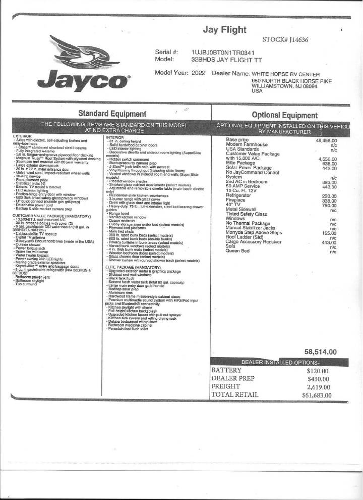 I'm interested in your 2022 JAYCO JAY FLIGHT 32 BHDS. is it still available?