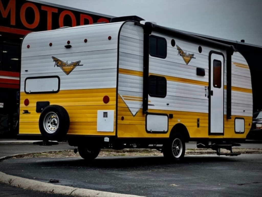 2022 Riverside Retro 190BH, 2022 Riverside Yellow BEDS FOR THE WHOLE FAMILY with Propane and Electric Hot water Heater, GE Heat pump and Propane Heater to keep you snug in your camper on the cold days Best Christmas gift for the whole family