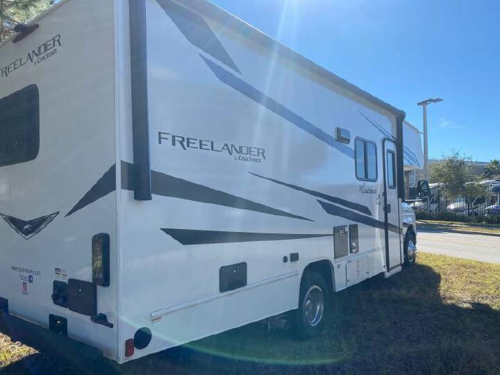 2023 COACHMEN Freelander, 23FS, Class C, Air Conditioning (BTUs) (13500),Air Conditioning (Standard),Air Conditioning Prewiring (Yes),Air Conditioning Type (Automatic),Anti-Lock Brakes (Standard),Awning (Standard),Awning Length (ft) (17),Awning Length (m) (5.2),Back-Up Camera (Yes),Bathroom (Standard),Bathroom Flooring Type (Vinyl),Bathroom Location (Center),Bathroom Medicine Cabinet (Standard),Bathroom Medicine Cabinet Location (Center),Bathroom Mirror (Standard),Bathroom Mirror Location (Center),Bathroom Sink (Standard),Bathroom Sink Location (Center),Bathroom Vent / Fan System (Standard),Bathroom Vent / Fan System Location (Center),Battery (Standard),Battery Converter Amps (55),Battery Power Converter (Yes),Bed Spreads (Standard),Beds (Standard),Black Water Holding Tank Gauge (Standard),Bluetooth® Audio (Yes),Body Material (Aluminum),Brakes (Standard),Cable Prewiring (Yes),Carbon Monoxide Detector (Standard),Carburetion (Standard),Carburetion Type (Fuel Injected),Chassis Brand (Ford),Chassis Model (E450),Construction (Standard),Cruise Control (Standard),Curtains / Shades (Standard),Cylinders (8),Displacement (l) (7.3),Door Type (Curtain),Doors (Standard),Emergency Exit(s) (Standard),Engine (Standard),Engine Type (V8),Exterior Flood Lights (Standard),Exterior Plugs (Standard),Freeze Proof Insulation (Standard),Fresh Water Holding Tank Gauge (Standard),Front Brake Type (Hydraulic Disc),Front Windshield Shade (Optional),Fuel Requirements (Regular),Fuel Type (Gas),Full Size Master Bedroom Closet (Yes),Generator (Standard),Gray Water Holding Tank Gauge (Standard),Ground Fault Plugs (Standard),Heat Prewiring (Yes),Heater (Standard),Heater Type (Automatic),Horsepower (bhp) (300),Horsepower (kW) (223.9),Horsepower RPM (3750),Interior Decor (Standard),Interior Wood Finish (Yes),Kitchen / Living Area (Standard),Kitchen / Living Area Flooring Type (Vinyl),Kitchen Location (Center),Kitchen Table Configuration (U-shaped Dinette),Layout (Stove),Leveling Jack Type (Front Manual / Rear Manual),Leveling Jacks (Standard),Living Area Location (Front),Master Bedroom (Standard),Master Bedroom Door Style (Curtain),Master Bedroom Flooring Type (Vinyl),Master Bedroom Location (Rear),Master Bedroom Shades / Curtains (Yes),Max Sleeping Count (6),Microwave Oven (Standard),Number Of Bathrooms (1),Number Of Convertible / Sofa Beds (1),Number Of Emergency Exits (1),Number Of Full Size Beds (1),Number Of Oven Burners (3),Number Of Queen Size Beds (1),Number Of Radios (1),Number Of Rows (1),Number Of Seats (2),Number Of Speeds (6),Number Of Televisions (1),Number of Awnings (1),Number of Doors (1),Number of Slideouts (1),Oven / Stove (Standard),Overdrive (Yes),Overhead Fan (Yes),Paint (Standard),Pass-Thru Storage (Standard),Power Retractable Awning (Yes),Power Retractable Slideout (Yes),Power Vent Fan (Optional),Power Windows (Standard),Prewiring (Standard),Propane Alarm (Standard),Propane Tank Gauge (Standard),Radio (Standard),Rear Brake Type (Hydraulic Disc),Rear Bumper D