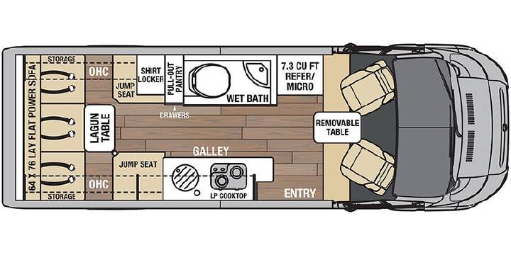 Air Conditioning, Auxiliary Battery, Awning, CO Detector, Generator, Hitch, Ladder, LP Detector, Microwave, Power Roof Vent, Refrigerator, Roof Vents, Satellite Radio, Shower, Smoke Detector, Solar Panels, Spare Tire Kit, Stove Top Burner, Toilet, TV, Water Heater,