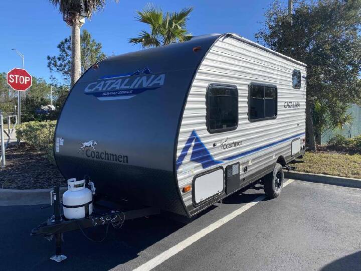 2023 COACHMEN Catalina Summit Series 7, 164BH, Travel Trailer, Air Conditioning (BTUs) (13500),Air Conditioning (Standard),Air Conditioning Prewiring (Yes),Air Conditioning Type (Automatic),Awning (Standard),Awning Length (ft) (10),Awning Length (m) (3),Back-Up Camera (Yes),Bathroom (Standard),Bathroom Flooring Type (Vinyl),Bathroom Location (Rear),Bathroom Mirror (Standard),Bathroom Mirror Location (Rear),Bathroom Vent / Fan System (Standard),Bathroom Vent / Fan System Location (Rear),Battery (Standard),Battery Converter Amps (45),Battery Power Converter (Yes),Bed Spreads (Standard),Beds (Standard),Black Water Holding Tank Gauge (Standard),Bluetooth® Audio (Yes),Body Material (Wood),Brakes (Standard),Brand Name (JBL),Bunkhouse (Yes),Cable Prewiring (Yes),Carbon Monoxide Detector (Standard),Construction (Standard),Curtains / Shades (Standard),Door Type (Curtain),Doors (Standard),Emergency Exit(s) (Standard),Exterior Flood Lights (Standard),Exterior Plugs (Standard),Exterior Shower (Standard),Freeze Proof Insulation (Standard),Fresh Water Holding Tank Gauge (Standard),Front Brake Type (Not Applicable),Gray Water Holding Tank Gauge (Standard),Ground Fault Plugs (Standard),Heat Prewiring (Yes),Heater (BTUs) (20000),Heater (Standard),Heater Type (Automatic),Interior Decor (Standard),Interior Wood Finish (Yes),Kitchen / Living Area (Standard),Kitchen / Living Area Flooring Type (Vinyl),Kitchen Location (Center),Kitchen Table Configuration (Pedestal Table),Layout (Stove),Leveling Jack Type (Front Manual / Rear Manual),Leveling Jacks (Standard),Living Area Location (Center),Max Sleeping Count (6),Microwave Oven (Standard),Mobile App Instrumentation (Yes),Number Of Bathrooms (1),Number Of Bunk Beds (2),Number Of Convertible / Sofa Beds (1),Number Of Emergency Exits (1),Number Of Oven Burners (2),Number Of Queen Size Beds (1),Number Of Radios (1),Number Of Sofas (1),Number of Awnings (1),Number of Doors (1),Oven / Stove (Standard),Overhead Fan (Yes),Paint (Standard),Pass-Thru Storage (Standard),Power Retractable Awning (Yes),Power Vent Fan (Standard),Prewiring (Standard),Propane Alarm (Standard),Radio (Standard),Rear Brake Type (Electric Drum),Rear Bumper Drain Hose Carrier (Standard),Refrigerator (Standard),Refrigerator Power Mode (Electric),Refrigerator Size (Full-Size),Retractable Roof Antenna (Standard),Roof Vents (Standard),Satellite Prewiring (Yes),Shower (Standard),Shower Location (Rear),Sidewall Construction (Aluminum),Sink / Faucet (Standard),Sink Cover / Cutting Boards (Standard),Sky Light (Standard),Smoke Detector (Standard),Sofa (Standard),Sofa Material (Vinyl),Solar (Yes),Solar Battery Charger (Optional),Speaker Location(s) (Interior / Exterior),Speakers (Standard),TV Antenna Prewiring (Yes),Toilet (Standard),Toilet Location (Rear),Toilet Type (Plastic),Wallpaper (Yes),Water Heater Pump Power Mode (Electrical / Propane),Water Heater Tank (Standard),Water Heater Tank Bypass (Yes),Water Heater Tank Capacity (g) (6),Water Heater Tank Capacity (