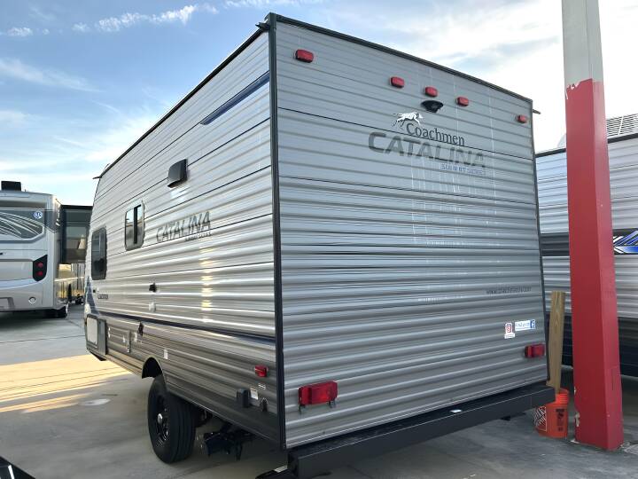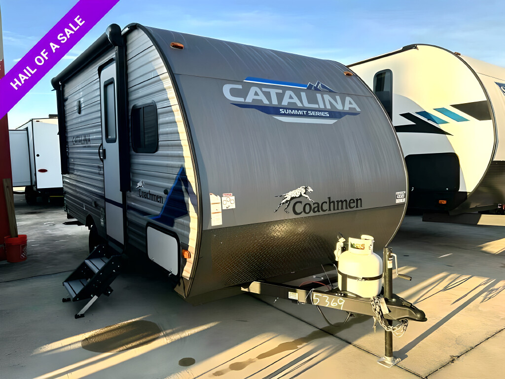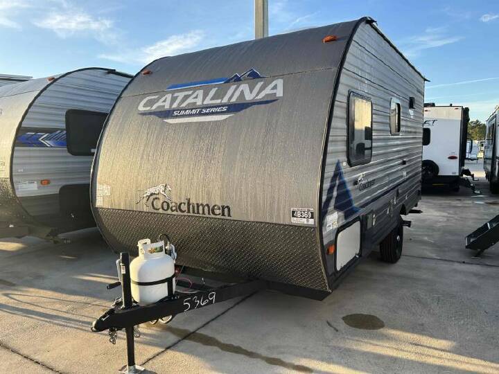 2023 COACHMEN Catalina Summit Series 7, 164RB, Travel Trailer, Air Conditioning (BTUs) (13500),Air Conditioning (Standard),Air Conditioning Prewiring (Prewiring) (Yes),Air Conditioning Type (Automatic),Awning (Standard),Awning Length (ft) (10),Awning Length (m) (3),Back-Up Camera (Prewiring) (Yes),Bathroom (Standard),Bathroom Flooring Type (Vinyl),Bathroom Location (Rear),Bathroom Mirror (Standard),Bathroom Mirror Location (Rear),Bathroom Vent / Fan System (Standard),Bathroom Vent / Fan System Location (Rear),Battery (Standard),Battery Converter Amps (45),Battery Power Converter (Yes),Bed Spreads (Standard),Beds (Standard),Black Water Holding Tank Gauge (Standard),Bluetooth® Audio (Yes),Body Material (Wood),Brakes (Standard),Brand Name (JBL),Cable Prewiring (Prewiring) (Yes),Carbon Monoxide Detector (Standard),Construction (Standard),Curtains / Shades (Standard),Door Type (Curtain),Doors (Standard),Emergency Exit(s) (Standard),Exterior Flood Lights (Standard),Exterior Plugs (Standard),Exterior Shower (Standard),Freeze Proof Insulation (Standard),Fresh Water Holding Tank Gauge (Standard),Front Brake Type (Not Applicable),Gray Water Holding Tank Gauge (Standard),Ground Fault Plugs (Standard),Heat Prewiring (Prewiring) (Yes),Heater (BTUs) (20000),Heater (Standard),Heater Type (Automatic),Interior Decor (Standard),Interior Wood Finish (Yes),Kitchen / Living Area (Standard),Kitchen / Living Area Flooring Type (Vinyl),Kitchen Location (Center),Kitchen Table Configuration (Pedestal Table),Layout (Stove),Leveling Jack Type (Front Manual / Rear Manual),Leveling Jacks (Standard),Living Area Location (Front),Max Sleeping Count (2),Microwave Oven (Standard),Mobile App Instrumentation (Yes),Number Of Bathrooms (1),Number Of Emergency Exits (1),Number Of Oven Burners (2),Number Of Queen Size Beds (1),Number Of Radios (1),Number Of Sofas (1),Number of Awnings (1),Number of Doors (1),Oven / Stove (Standard),Overhead Fan (Yes),Paint (Standard),Pass-Thru Storage (Standard),Power Retractable Awning (Yes),Power Vent Fan (Standard),Prewiring (Prewiring) (Standard),Propane Alarm (Standard),Radio (Standard),Rear Brake Type (Electric Drum),Rear Bumper Drain Hose Carrier (Standard),Refrigerator (Standard),Refrigerator Power Mode (Electric),Refrigerator Size (Full-Size),Retractable Roof Antenna (Standard),Roof Vents (Standard),Satellite Prewiring (Prewiring) (Yes),Shower (Standard),Shower Location (Rear),Sidewall Construction (Aluminum),Sink / Faucet (Standard),Sink Cover / Cutting Boards (Standard),Sky Light (Standard),Smoke Detector (Standard),Sofa (Standard),Sofa Material (Vinyl),Solar (Prewiring) (Yes),Solar Battery Charger (Optional),Speaker Location(s) (Interior / Exterior),Speakers (Standard),TV Antenna Prewiring (Prewiring) (Yes),Toilet (Standard),Toilet Location (Rear),Toilet Type (Plastic),Wallpaper (Yes),Water Heater Pump Power Mode (Electrical / Propane),Water Heater Tank (Standard),Water Heater Tank Bypass (Yes),Water Heater Tank Capacity (g) (6),Water Heate