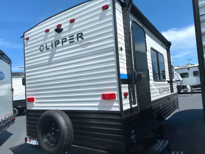 2023 COACHMEN Clipper 3K Series, 16CFB, Travel Trailer, Air Conditioning (BTUs) (13500),Air Conditioning (Standard),Air Conditioning Prewiring (Yes),Air Conditioning Type (Automatic),Awning (Standard),Awning Length (ft) (10),Awning Length (m) (3),Back-Up Camera (Yes),Bathroom (Standard),Bathroom Flooring Type (Vinyl),Bathroom Location (Rear),Bathroom Vent / Fan System (Standard),Bathroom Vent / Fan System Location (Rear),Battery (Standard),Battery Power Converter (Yes),Beds (Standard),Black Water Holding Tank Gauge (Standard),Bluetooth® Audio (Yes),Body Material (Aluminum),Brakes (Standard),Cable Prewiring (Yes),Carbon Monoxide Detector (Standard),Construction (Standard),Curtains / Shades (Standard),Door Type (Curtain),Doors (Standard),Emergency Exit(s) (Standard),Exterior Flood Lights (Standard),Exterior Plugs (Standard),Fresh Water Holding Tank Gauge (Standard),Front Brake Type (Not Applicable),Gray Water Holding Tank Gauge (Standard),Ground Fault Plugs (Standard),Heat Prewiring (Yes),Heater (BTUs) (20000),Heater (Standard),Heater Type (Automatic),Interior Decor (Standard),Interior Wood Finish (Yes),Kitchen / Living Area (Standard),Kitchen / Living Area Flooring Type (Vinyl),Kitchen Location (Center),Kitchen Table Configuration (Bench Seats),Layout (Stove),Leveling Jack Type (Rear Manual),Leveling Jacks (Standard),Living Area Location (Center),Max Sleeping Count (4),Microwave Oven (Optional),Mobile App Instrumentation (Yes),Number Of Bathrooms (1),Number Of Convertible / Sofa Beds (1),Number Of Emergency Exits (1),Number Of Full Size Beds (1),Number Of Oven Burners (2),Number Of Radios (1),Number of Awnings (1),Number of Doors (1),Oven / Stove (Standard),Overhead Fan (Yes),Paint (Standard),Pass-Thru Storage (Standard),Power Retractable Awning (Yes),Prewiring (Standard),Propane Alarm (Standard),Radio (Standard),Rear Brake Type (Electric Drum),Rear Bumper Drain Hose Carrier (Standard),Refrigerator (Standard),Refrigerator Power Mode (Electric),Refrigerator Size (Compact),Retractable Roof Antenna (Standard),Roof Vents (Standard),Satellite Prewiring (Yes),Shower (Standard),Shower Location (Rear),Sidewall Construction (Aluminum),Sink / Faucet (Standard),Sky Light (Standard),Smoke Detector (Standard),Solar (Yes),Speaker Location(s) (Interior),Speakers (Standard),Toilet (Standard),Toilet Location (Rear),Toilet Type (Plastic),Wallpaper (Yes),Water Heater Pump Power Mode (Electrical / Propane),Water Heater Tank (Standard),Water Heater Tank Capacity (g) (6),Water Heater Tank Capacity (l) (22.7),Wireless / Connectivity (Standard), ,