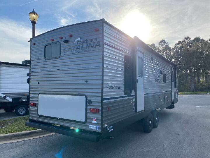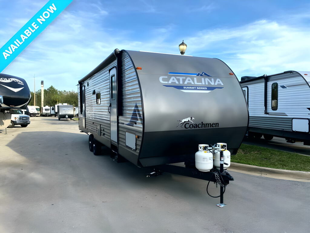 2023 COACHMEN Catalina Summit Series 8, 271DBS, Travel Trailer, Air Conditioning (BTUs) (13500),Air Conditioning (Standard),Air Conditioning Prewiring (Yes),Air Conditioning Type (Automatic),Awning (Standard),Awning Length (ft) (21),Awning Length (m) (6.4),Back-Up Camera (Yes),Bathroom (Standard),Bathroom Flooring Type (Vinyl),Bathroom Location (Center),Bathroom Medicine Cabinet (Standard),Bathroom Medicine Cabinet Location (Center),Bathroom Mirror (Standard),Bathroom Mirror Location (Center),Bathroom Sink (Standard),Bathroom Sink Location (Center),Bathroom Vent / Fan System (Standard),Bathroom Vent / Fan System Location (Center),Bathtub (Standard),Bathtub Location (Center),Battery (Standard),Battery Converter Amps (45),Battery Power Converter (Yes),Bed Spreads (Standard),Beds (Standard),Black Water Holding Tank Gauge (Standard),Body Material (Fiberglass),Brakes (Standard),Bunkhouse (Yes),CD Player (Standard),Cable Prewiring (Yes),Carbon Monoxide Detector (Standard),Construction (Standard),Curtains / Shades (Standard),DVD Player (Standard),Door Type (Curtain),Doors (Standard),Emergency Exit(s) (Standard),Exterior Flood Lights (Standard),Exterior Kitchen (Standard),Exterior Plugs (Standard),Fresh Water Holding Tank Gauge (Standard),Front Brake Type (Not Applicable),Gray Water Holding Tank Gauge (Standard),Ground Fault Plugs (Standard),Heat Prewiring (Yes),Heater (BTUs) (35000),Heater (Standard),Heater Type (Automatic),Interior Decor (Standard),Interior Wood Finish (Yes),Kitchen / Living Area (Standard),Kitchen / Living Area Flooring Type (Carpet / Vinyl),Kitchen Location (Center),Kitchen Table Configuration (U-shaped Dinette),Layout (Oven / Stove),Leveling Jack Type (Front Manual / Rear Manual),Leveling Jacks (Standard),Living Area Location (Center),Master Bedroom (Standard),Master Bedroom Door Style (Full Sliding Door),Master Bedroom Flooring Type (Vinyl),Master Bedroom Location (Front),Master Bedroom Mirror Doors (Yes),Master Bedroom Shades / Curtains (Yes),Max Sleeping Count (10),Microwave Oven (Standard),Mobile App Instrumentation (Yes),Number Of Bathrooms (1),Number Of Convertible / Sofa Beds (2),Number Of Discs (1),Number Of Double Beds (2),Number Of Emergency Exits (1),Number Of Oven Burners (3),Number Of Queen Size Beds (1),Number Of Radios (1),Number Of Sofas (1),Number of Awnings (1),Number of Doors (2),Number of Slideouts (1),Oven / Stove (Standard),Overhead Fan (Yes),Paint (Standard),Pass-Thru Storage (Standard),Power Retractable Awning (Yes),Power Retractable Slideout (Yes),Power Vent Fan (Standard),Prewiring (Standard),Propane Alarm (Standard),Propane Tank Cover (Standard),Radio (Standard),Rear Brake Type (Electric Drum),Rear Bumper Drain Hose Carrier (Standard),Refrigerator (Standard),Refrigerator (Yes),Refrigerator Power Mode (Electric),Refrigerator Size (Full-Size),Retractable Roof Antenna (Standard),Roof Vents (Standard),Satellite Prewiring (Yes),Shower (Standard),Shower Location (Center),Sidewall Construction (Aluminum),Sink / F