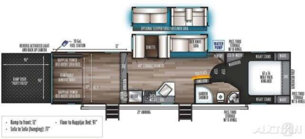 Options Included: PLATINUM PACKAGE, WOLF PACK STANDARD EQUIPMENT, 5500 WATT GENERATOR, JUICE PACK PLUS PKG, 3 SEASON WALL, RVIA SEAL
