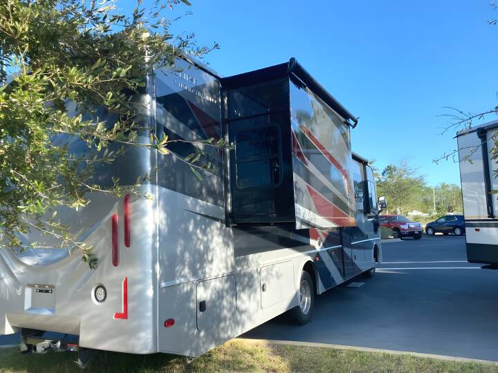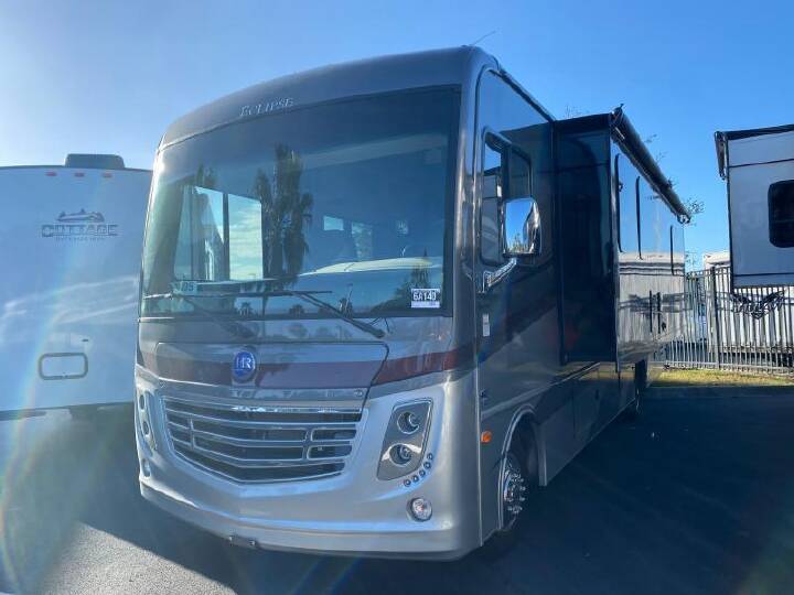2023 HOLIDAY RAMBLER ECLIPSE, 32S, Class A Gas, Air Conditioning (BTUs) (13500),Air Conditioning (Standard),Air Conditioning Prewiring (Prewiring) (Yes),Air Conditioning Type (Automatic),Anti-Lock Brakes (Standard),Awning (Standard),Back-Up Camera (Prewiring) (Yes),Bathroom (Standard),Bathroom Flooring Type (Vinyl),Bathroom Location (Rear / Center),Bathroom Medicine Cabinet (Standard),Bathroom Medicine Cabinet Location (Rear / Center),Bathroom Mirror (Standard),Bathroom Mirror Location (Rear / Center),Bathroom Sink (Standard),Bathroom Sink Location (Rear / Center),Bathroom Vent / Fan System (Standard),Bathroom Vent / Fan System Location (Rear / Center),Battery (Standard),Battery Converter Amps (55),Battery Power Converter (Yes),Bed Spreads (Standard),Beds (Standard),Black Water Holding Tank Gauge (Standard),Bluetooth® Audio (Yes),Body Material (Aluminum),Brakes (Standard),CD Player (Standard),Cable Prewiring (Prewiring) (Yes),Carbon Monoxide Detector (Standard),Carburetion (Standard),Carburetion Type (Fuel Injected),Chassis Brand (Ford),Chassis Model (F53),Construction (Standard),Cruise Control (Standard),Curtains / Shades (Standard),Cylinders (8),DVD Player (Standard),Displacement (l) (7.3),Door Type (Plastic / Glass),Doors (Standard),Emergency Exit(s) (Standard),Engine (Standard),Engine Type (V8),Exterior Entertainment System (Standard),Exterior Flood Lights (Standard),Exterior Ladder (Standard),Exterior Plugs (Standard),Exterior Shower (Standard),Fresh Water Holding Tank Gauge (Standard),Front Brake Type (Hydraulic Disc),Front Windshield Shade (Standard),Fuel Requirements (Regular),Fuel Type (Gas),Full Size Master Bedroom Closet (Yes),Generator (Standard),Gray Water Holding Tank Gauge (Standard),Ground Fault Plugs (Standard),Heat Prewiring (Prewiring) (Yes),Heater (BTUs) (30000),Heater (Standard),Heater Type (Automatic),Horsepower (bhp) (350),Horsepower (kW) (261.2),Horsepower RPM (3900),Interior Decor (Standard),Interior Wood Finish (Yes),Kitchen / Living Area (Standard),Kitchen / Living Area Flooring Type (Vinyl),Kitchen Location (Center),Kitchen Table Configuration (Bench Seats),Layout (Oven / Stove),Leveling Jack Type (Front Power / Rear Power),Leveling Jacks (Standard),Living Area Location (Front),Master Bedroom (Standard),Master Bedroom Door Style (Full Sliding Door),Master Bedroom Flooring Type (Vinyl),Master Bedroom Location (Rear),Master Bedroom Mirror Doors (Yes),Master Bedroom Shades / Curtains (Yes),Max Sleeping Count (8),Microwave Oven (Standard),Number Of Bathrooms (2),Number Of Convertible / Sofa Beds (2),Number Of Discs (1),Number Of Emergency Exits (1),Number Of King Size Beds (1),Number Of Oven Burners (3),Number Of Queen Size Beds (1),Number Of Radios (1),Number Of Rows (1),Number Of Seats (2),Number Of Sofas (1),Number Of Speeds (6),Number Of Televisions (3),Number of Awnings (1),Number of Doors (1),Number of Slideouts (2),Oven / Stove (Standard),Overdrive (Yes),Overhead Fan (Yes),Paint (Standard),Pass-Thru Storage (Standa