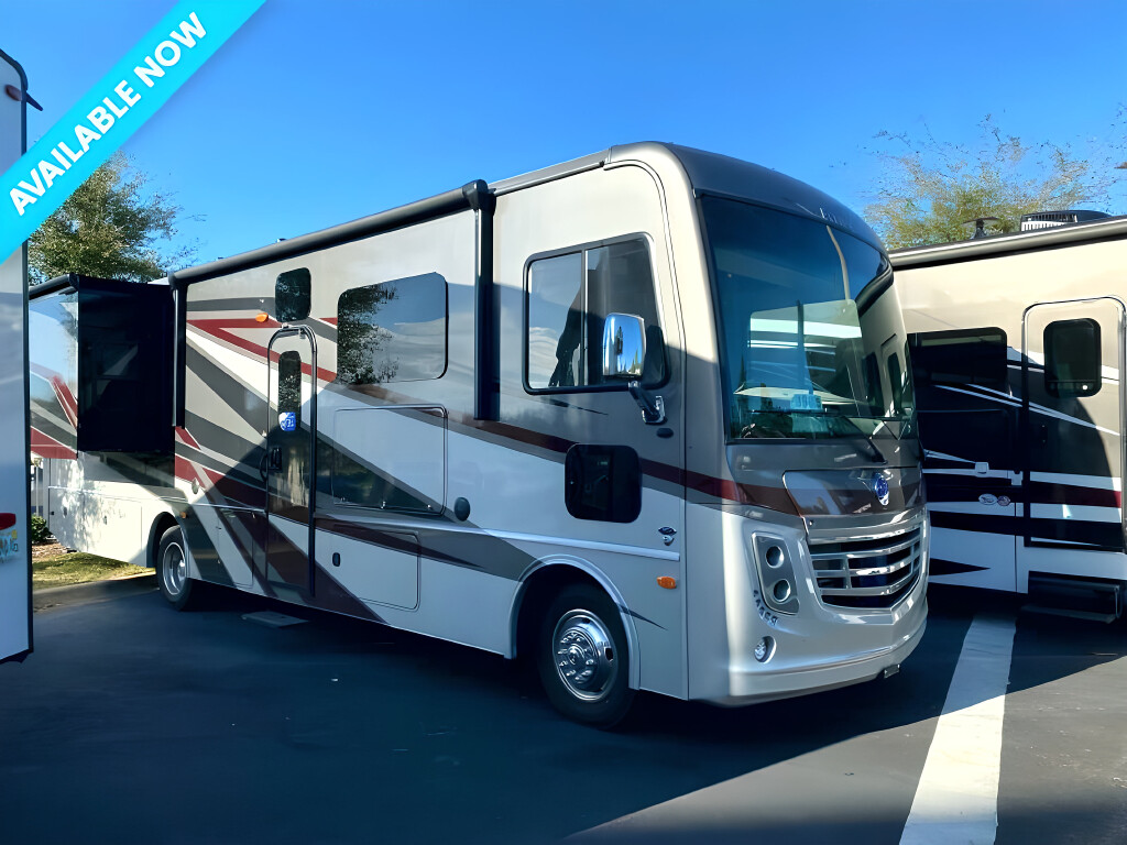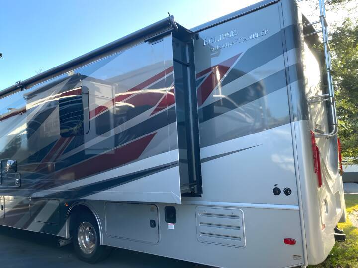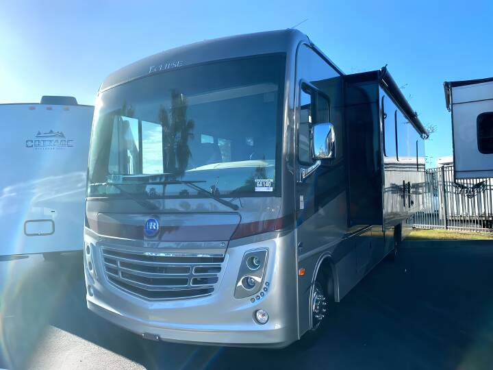 2023 HOLIDAY RAMBLER ECLIPSE, 32S, Class A Gas, Air Conditioning (BTUs) (13500),Air Conditioning (Standard),Air Conditioning Prewiring (Yes),Air Conditioning Type (Automatic),Anti-Lock Brakes (Standard),Awning (Standard),Back-Up Camera (Yes),Bathroom (Standard),Bathroom Flooring Type (Vinyl),Bathroom Location (Rear / Center),Bathroom Medicine Cabinet (Standard),Bathroom Medicine Cabinet Location (Rear / Center),Bathroom Mirror (Standard),Bathroom Mirror Location (Rear / Center),Bathroom Sink (Standard),Bathroom Sink Location (Rear / Center),Bathroom Vent / Fan System (Standard),Bathroom Vent / Fan System Location (Rear / Center),Battery (Standard),Battery Converter Amps (55),Battery Power Converter (Yes),Bed Spreads (Standard),Beds (Standard),Black Water Holding Tank Gauge (Standard),Bluetooth® Audio (Yes),Body Material (Aluminum),Brakes (Standard),CD Player (Standard),Cable Prewiring (Yes),Carbon Monoxide Detector (Standard),Carburetion (Standard),Carburetion Type (Fuel Injected),Chassis Brand (Ford),Chassis Model (F53),Construction (Standard),Cruise Control (Standard),Curtains / Shades (Standard),Cylinders (8),DVD Player (Standard),Displacement (l) (7.3),Door Type (Plastic / Glass),Doors (Standard),Emergency Exit(s) (Standard),Engine (Standard),Engine Type (V8),Exterior Entertainment System (Standard),Exterior Flood Lights (Standard),Exterior Ladder (Standard),Exterior Plugs (Standard),Exterior Shower (Standard),Fresh Water Holding Tank Gauge (Standard),Front Brake Type (Hydraulic Disc),Front Windshield Shade (Standard),Fuel Requirements (Regular),Fuel Type (Gas),Full Size Master Bedroom Closet (Yes),Generator (Standard),Gray Water Holding Tank Gauge (Standard),Ground Fault Plugs (Standard),Heat Prewiring (Yes),Heater (BTUs) (30000),Heater (Standard),Heater Type (Automatic),Horsepower (bhp) (350),Horsepower (kW) (261.2),Horsepower RPM (3900),Interior Decor (Standard),Interior Wood Finish (Yes),Kitchen / Living Area (Standard),Kitchen / Living Area Flooring Type (Vinyl),Kitchen Location (Center),Kitchen Table Configuration (Bench Seats),Layout (Oven / Stove),Leveling Jack Type (Front Power / Rear Power),Leveling Jacks (Standard),Living Area Location (Front),Master Bedroom (Standard),Master Bedroom Door Style (Full Sliding Door),Master Bedroom Flooring Type (Vinyl),Master Bedroom Location (Rear),Master Bedroom Mirror Doors (Yes),Master Bedroom Shades / Curtains (Yes),Max Sleeping Count (8),Microwave Oven (Standard),Number Of Bathrooms (2),Number Of Convertible / Sofa Beds (2),Number Of Discs (1),Number Of Emergency Exits (1),Number Of King Size Beds (1),Number Of Oven Burners (3),Number Of Queen Size Beds (1),Number Of Radios (1),Number Of Rows (1),Number Of Seats (2),Number Of Sofas (1),Number Of Speeds (6),Number Of Televisions (3),Number of Awnings (1),Number of Doors (1),Number of Slideouts (2),Oven / Stove (Standard),Overdrive (Yes),Overhead Fan (Yes),Paint (Standard),Pass-Thru Storage (Standard),Power Retractable Awning (Yes),Power Retract
