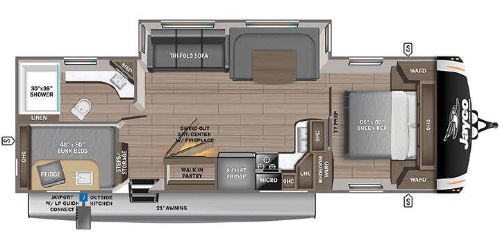 Customer Value Package: MORryde StepAbove Entrance Steps with Blue LED Light, 15,000 BTU "Whisper Quiet" A/C, 50-AMP Service with Dual A/C Ducts and Second A/C Prep, Electric Patio Awning with Integrated Dimmable LED Lights, 60K Tankless Water Heater, Custom Machined Aluminum Rims, Rear 2 in. Accessories Receiver, Keyed-A-Like Lock System (Single Key for all Doors/Locks), Rooftop and Ground Solar Prep for Go Power, Security Monitor Prep- Observation Camera Prep (Rear, Sides, Entrance Door), Hidden Hinges on Cabinet Doors, Upgraded Friction Hinge ENtrance Door with XL Grab Handle, LED Smart HDTV with Fully Digital HDMI Output, 12V A/V System with Bluetooth and HDMI, Stainless Steel Range with Glass Cover, Stainless Steel 30 in. Over-the-Range Microwave, Rain-Proof Bathroom Power Vent, Under-the-Bed Storage