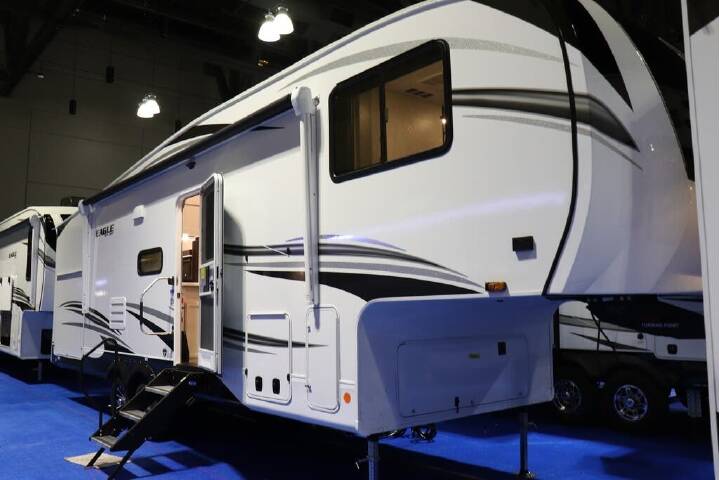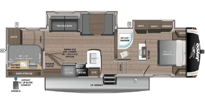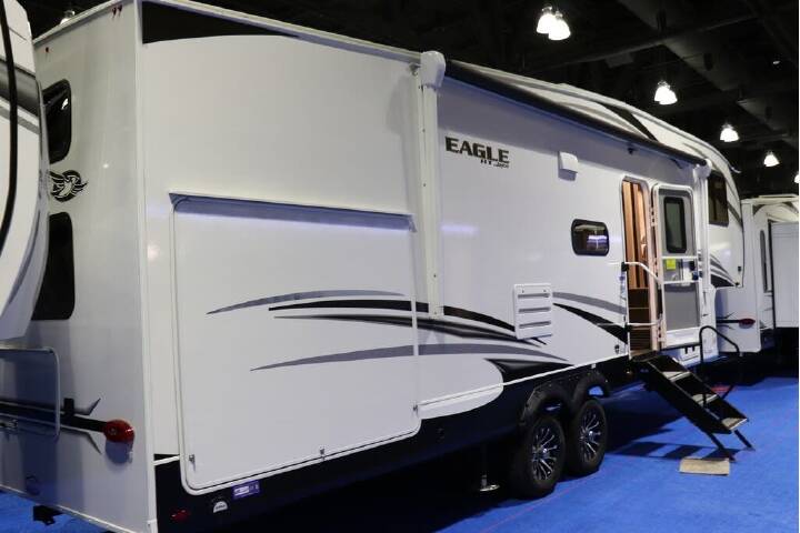 2023 Jayco Eagle HT 29.5BHDS, Not actual photos of #48798. The Jayco Eagle HT 29.5BHDS has a very comfortable and spacious floor plan for the whole family. The Eagle HT 29.5BHDS has a full set of features including: a large outside kitchen with TV hook ups, a spacious living area and bathroom with walk-in shower, a convertible sofa and dinette for additional sleeping, two double bunks with wardrobe and a private queen bed with an amazing amount of wardrobe plus has it's own entrance to the bathroom. This unit is a perfect fit for families with plenty of sleeping, wardrobe and storage space for everybody!