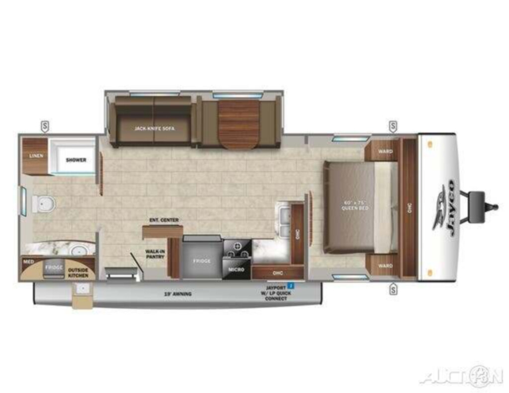 2023 Jayco Jay Feather 25RB, The Jayco Jay Feather 25RB is easy to tow and still contains all the most desirable features. The Jay Feather 25RB has a great living area with a convertible sofa and U-dinette for additional sleeping and directly across from that you have your entertainment center with a large walk-in pantry. In the front you'll find the private queen bed with wardrobe, and in the rear, one of the best features in this unit, you have a very spacious bathroom with all the storage you could possibly need.