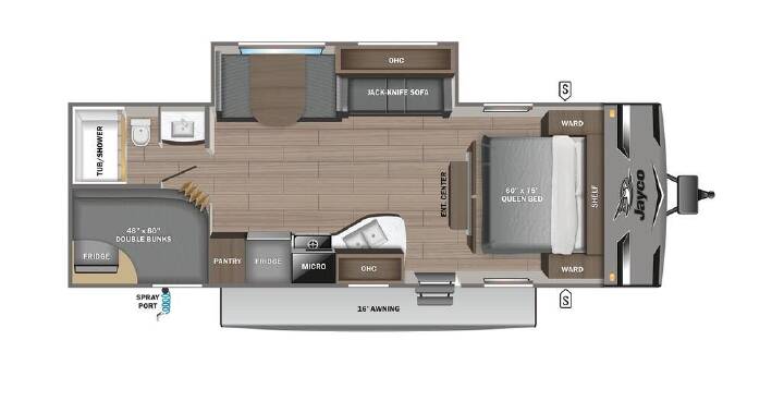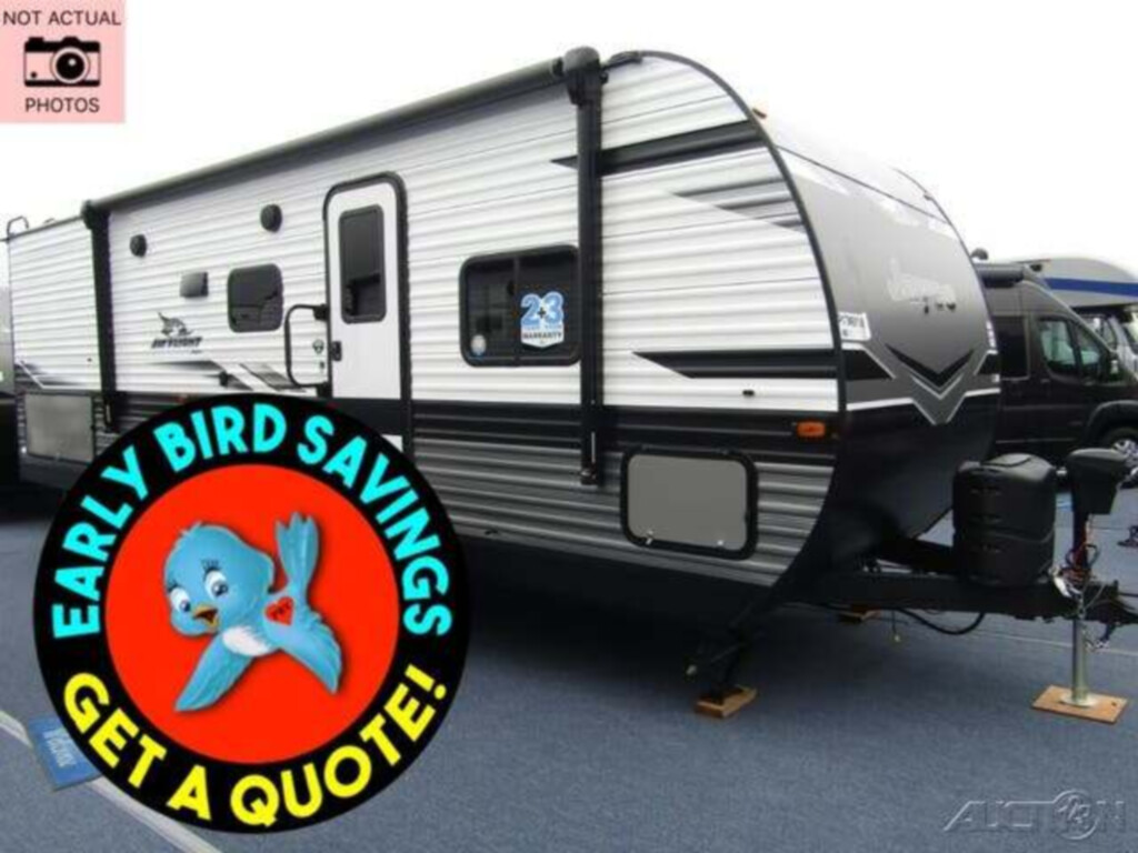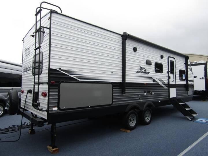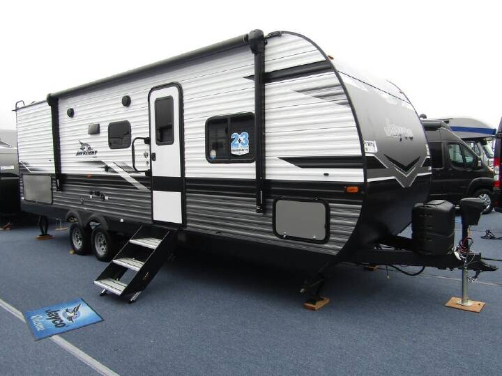 2023 Jayco Jay Flight 267BHS, Not actual photos of #49033. The Jayco Jay Flight 267BHS is an ideal family camper featuring a queen bed in the front and a double bed bunk in the back. Its spacious interior is complete with pantry storage, a fully equipped kitchen, and a sleeper dinette for more sleeping space on the road. Overall, the Jay Flight 267BHS is one of the best ""bang for your buck"" campers available!