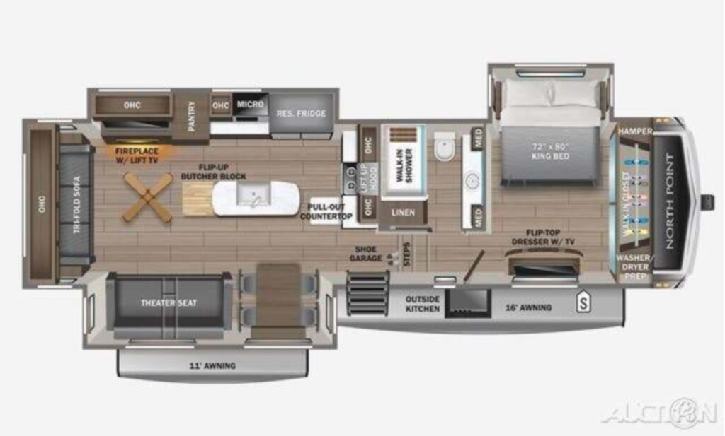 Options Included: CUSTOMRE VALUE PKG W HEAT PUMP, NORTH POINT LUXURY PACKAGE, OVERLANDER II SOLAR PACKAGE, GENERATOR LP PREP
