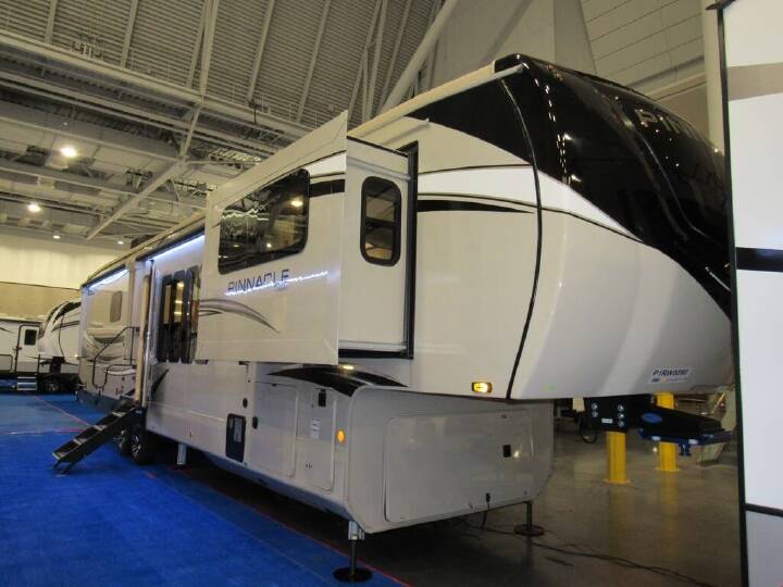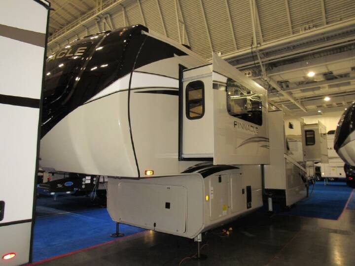 2023 Jayco Pinnacle 38FLGS, Not actual photos of #48862. The Jayco Pinnacle 38FLGS is the perfect couples retreat for anytime you want to get out of town with your loved one. The back of the unit has a spacious King Size bed and bathroom for when the night comes to and end. in the middle is a lovely kitchen area with residential fridge and a microwave and stove top. the front of has theatre seating and 2 couches that look on to a 50" TV set.