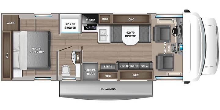 Air Conditioning, Auxiliary Battery, Awning, Backup Monitor, Batteries, Battery Charger, Booth Dinette, CD Player, CO Detector, Converter, External Shower, Fire Extinguisher, Furnace, Generator, Hitch, Ladder, LP Detector, Medicine Cabinet, Microwave, Oven, Power Entrance Step, Queen Bed, Refrigerator, Roof Vents, Shower, Skylight, Smoke Detector, Stove, Stove Top Burner, Toilet, TV, TV Antenna, Water Heater,