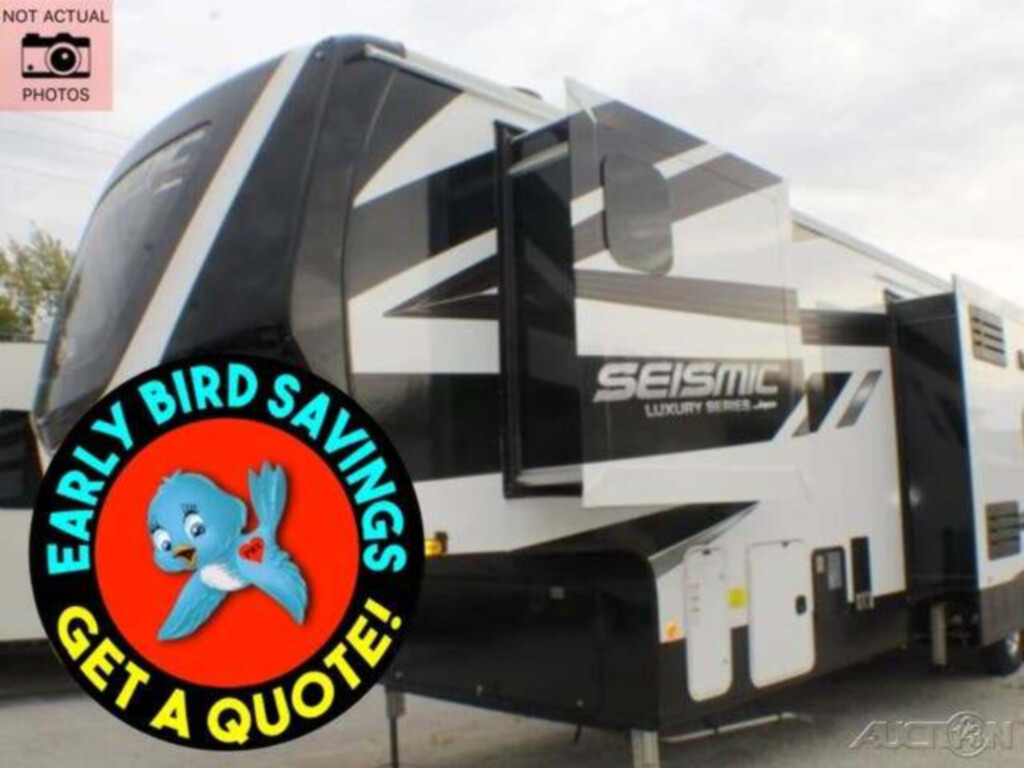 The Jayco Siesmic 3512 is the ultimate toy hauler that also includes plenty of amenities on the inside to keep you entertained wherever you go for the weekend. In the front of the unit there is a queen size bed and bathroom with shower included. The middle is a kitchen area with kitchen island. also an entertainment center with included fireplace if the evening gets a little cold.