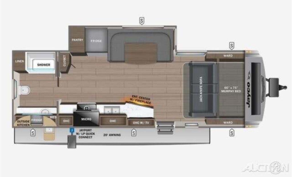 2023 Jayco White Hawk 24MRB, The Jayco White Hawk 24MRB combines a light farmhouse feel with versatility and comfort. This unit has a nice large full bath at the rear, an expansive u-dinette that faces a fireplace in its mid section, and at the front is a murphy bed. The Jayco White Hawk 24MRB also has an outdoor kitchen and 20" awning perfect for warm summer days.