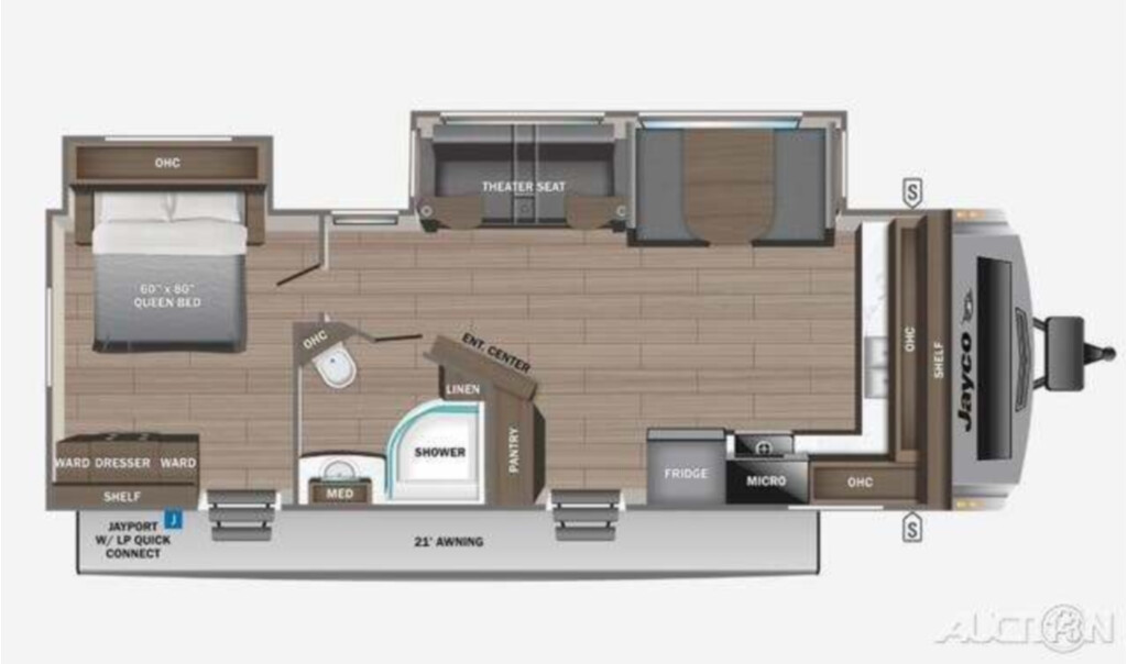 2023 Jayco White Hawk 26FK, The Jayco White Hawk 26FK is a great travel trailer for campers looking to spend a good amount of time on the road. It has a spacious and stylish front kitchen with a u-dinette and theater seating. At the rear of the Jayco White Hawk 26FK is a queen sized bed, which sits directly next to the mid bath. This unit has plenty of storage options in every room, pairing nicely with its light and open layout.