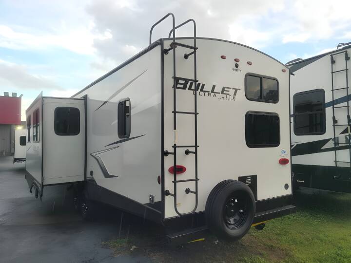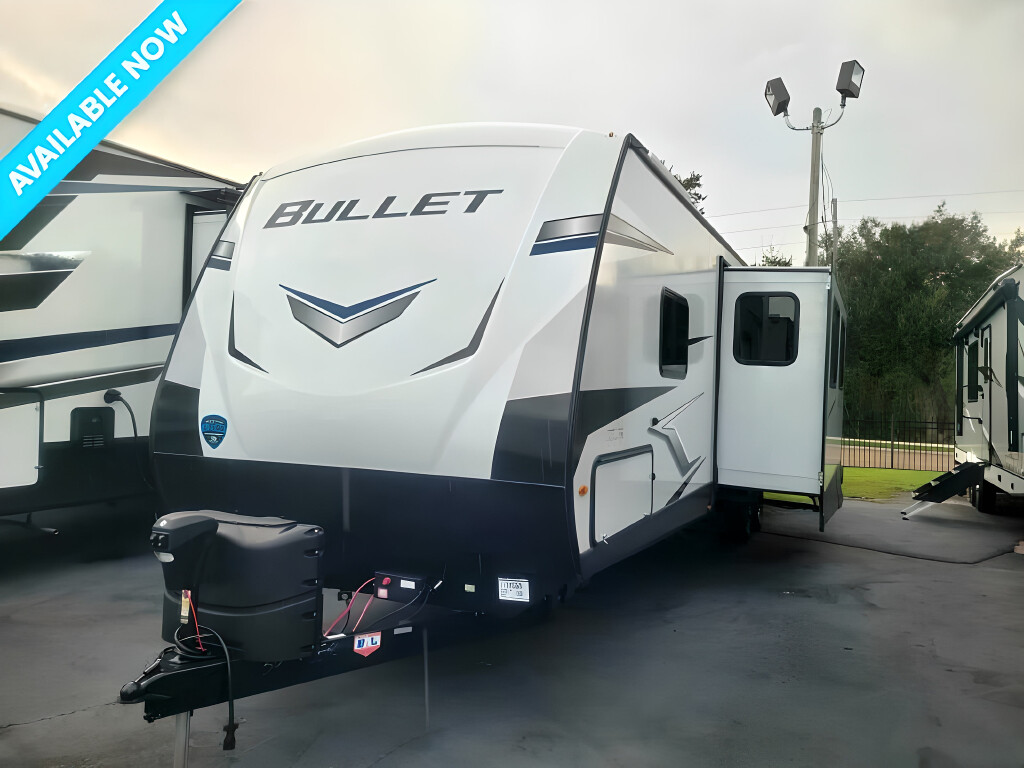 2023 KEYSTONE Bullet (All Regions / East), 330BHS, Travel Trailer, Air Conditioning (BTUs) (13500),Air Conditioning (Standard),Air Conditioning Prewiring (Yes),Air Conditioning Type (Automatic),Awning (Standard),Awning Length (ft) (19),Awning Length (m) (5.8),Back-Up Camera (Yes),Bathroom (Standard),Bathroom Flooring Type (Vinyl),Bathroom Location (Center),Bathroom Medicine Cabinet (Standard),Bathroom Medicine Cabinet Location (Center),Bathroom Mirror (Standard),Bathroom Mirror Location (Center),Bathroom Sink (Standard),Bathroom Sink Location (Center),Bathroom Vent / Fan System (Standard),Bathroom Vent / Fan System Location (Center),Battery (Standard),Battery Power Converter (Yes),Bed Spreads (Standard),Beds (Standard),Black Water Holding Tank Gauge (Standard),Bluetooth® Audio (Yes),Body Material (Aluminum),Brakes (Standard),Bunkhouse (Yes),CD Player (Standard),Cable Prewiring (Yes),Carbon Monoxide Detector (Standard),Construction (Standard),Curtains / Shades (Standard),DVD Player (Standard),Door Type (Plastic / Glass),Doors (Standard),Emergency Exit(s) (Standard),Exterior Flood Lights (Standard),Exterior Kitchen (Standard),Exterior Ladder (Standard),Exterior Plugs (Standard),Exterior Shower (Standard),Freeze Proof Insulation (Standard),Fresh Water Holding Tank Gauge (Standard),Front Brake Type (Not Applicable),Gray Water Holding Tank Gauge (Standard),Ground Fault Plugs (Standard),Heat Prewiring (Yes),Heater (BTUs) (30000),Heater (Standard),Heater Type (Automatic),Hitch Lights (Standard),Interior Decor (Standard),Interior Wood Finish (Yes),Kitchen / Living Area (Standard),Kitchen / Living Area Flooring Type (Carpet / Vinyl),Kitchen Location (Center),Kitchen Table Configuration (Bench Seats),Layout (Oven / Stove),Leveling Jack Type (Front Power / Rear Power),Leveling Jacks (Standard),Living Area Location (Center),Luggage Door (Standard),Master Bedroom (Standard),Master Bedroom Door Style (Conventional Door),Master Bedroom Flooring Type (Vinyl),Master Bedroom Location (Front / Rear),Master Bedroom Shades / Curtains (Yes),Max Sleeping Count (10),Microwave Oven (Standard),Number Of Bathrooms (2),Number Of Convertible / Sofa Beds (2),Number Of Discs (1),Number Of Double Beds (2),Number Of Emergency Exits (1),Number Of Oven Burners (3),Number Of Queen Size Beds (1),Number Of Radios (1),Number Of Sofas (1),Number Of Televisions (1),Number of Awnings (1),Number of Doors (2),Number of Slideouts (2),Oven / Stove (Standard),Overhead Fan (Yes),Paint (Standard),Pass-Thru Storage (Standard),Power Retractable Awning (Yes),Power Retractable Slideout (Yes),Power Vent Fan (Standard),Prewiring (Standard),Propane Alarm (Standard),Propane Tank Cover (Standard),Radio (Standard),Rear Brake Type (Electric Drum),Rear Bumper Drain Hose Carrier (Standard),Recliners / Rockers (Optional),Refrigerator (Standard),Refrigerator (Yes),Refrigerator Power Mode (Electric / Propane),Refrigerator Size (Mid-Size),Retractable Roof Antenna (Standard),Roof Vents (Standard),Satellite Prew