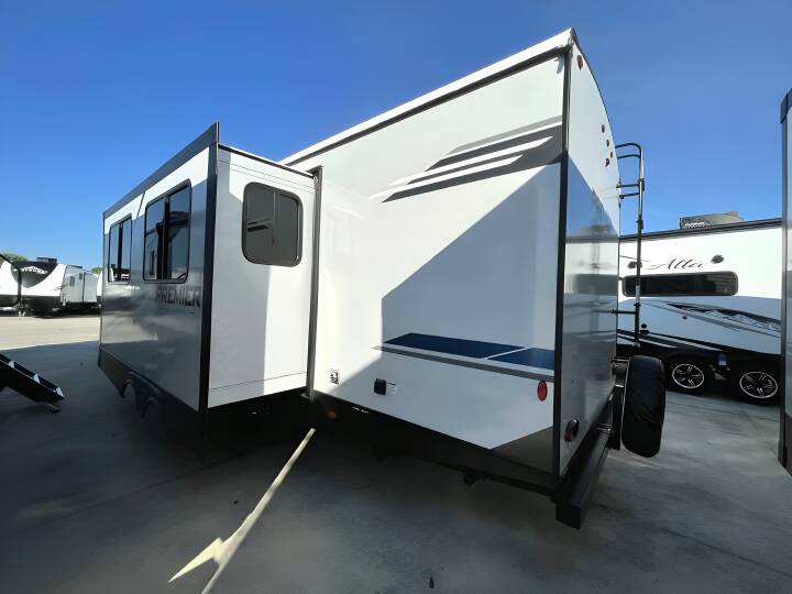 2023 BULLET PREMIER, 26RBPR, Travel Trailer, Air Conditioning (BTUs) (13500),Air Conditioning (Standard),Air Conditioning Prewiring (Prewiring) (Yes),Air Conditioning Type (Automatic),Awning (Standard),Awning Length (ft) (15),Awning Length (m) (4.6),Back-Up Camera (Prewiring) (Yes),Bathroom (Standard),Bathroom Flooring Type (Vinyl),Bathroom Location (Rear),Bathroom Medicine Cabinet (Standard),Bathroom Medicine Cabinet Location (Rear),Bathroom Mirror (Standard),Bathroom Mirror Location (Rear),Bathroom Sink (Standard),Bathroom Sink Location (Rear),Bathroom Vent / Fan System (Standard),Bathroom Vent / Fan System Location (Rear),Battery (Standard),Battery Power Converter (Yes),Bed Spreads (Standard),Beds (Standard),Black Water Holding Tank Gauge (Standard),Bluetooth® Audio (Yes),Body Material (Aluminum),Brakes (Standard),CD Player (Standard),Cable Prewiring (Prewiring) (Yes),Carbon Monoxide Detector (Standard),Construction (Standard),Curtains / Shades (Standard),DVD Player (Standard),Door Type (Plastic / Glass),Doors (Standard),Emergency Exit(s) (Standard),Exterior Flood Lights (Standard),Exterior Ladder (Standard),Exterior Plugs (Standard),Exterior Shower (Standard),Freeze Proof Insulation (Standard),Fresh Water Holding Tank Gauge (Standard),Front Brake Type (Not Applicable),Gray Water Holding Tank Gauge (Standard),Ground Fault Plugs (Standard),Heat Prewiring (Prewiring) (Yes),Heater (BTUs) (30000),Heater (Standard),Heater Type (Automatic),Hitch Lights (Standard),Interior Decor (Standard),Interior Wood Finish (Yes),Kitchen / Living Area (Standard),Kitchen / Living Area Flooring Type (Carpet / Vinyl),Kitchen Location (Center),Kitchen Table Configuration (U-shaped Dinette),Layout (Oven / Stove),Leveling Jack Type (Front Power / Rear Power),Leveling Jacks (Standard),Living Area Location (Center),Max Sleeping Count (4),Microwave Oven (Standard),Number Of Bathrooms (1),Number Of Convertible / Sofa Beds (1),Number Of Discs (1),Number Of Emergency Exits (1),Number Of Oven Burners (3),Number Of Queen Size Beds (1),Number Of Radios (1),Number Of Televisions (1),Number of Awnings (1),Number of Doors (1),Number of Slideouts (1),Oven / Stove (Standard),Overhead Fan (Yes),Paint (Standard),Pass-Thru Storage (Standard),Power Retractable Awning (Yes),Power Retractable Slideout (Yes),Power Vent Fan (Standard),Prewiring (Prewiring) (Standard),Propane Alarm (Standard),Propane Tank Cover (Standard),Radio (Standard),Rear Brake Type (Electric Drum),Rear Bumper Drain Hose Carrier (Standard),Recliners / Rockers (Optional),Refrigerator (Standard),Refrigerator Power Mode (Electric / Propane),Refrigerator Size (Mid-Size),Retractable Roof Antenna (Standard),Roof Vents (Standard),Satellite Prewiring (Prewiring) (Yes),Shower (Standard),Shower Location (Rear),Sidewall Construction (Fiberglass),Sink / Faucet (Standard),Sink Cover / Cutting Boards (Standard),Sky Light (Standard),Slideouts (Standard),Smoke Detector (Standard),Solar (Prewiring) (Yes),Solar Battery Charger (Standard)