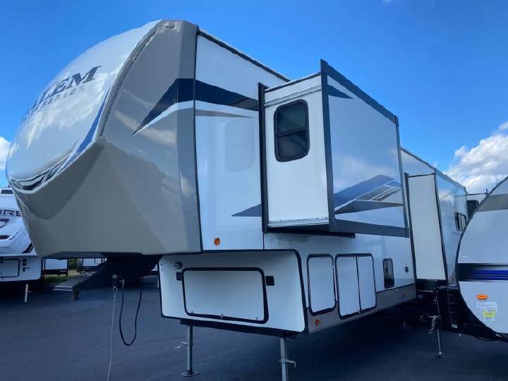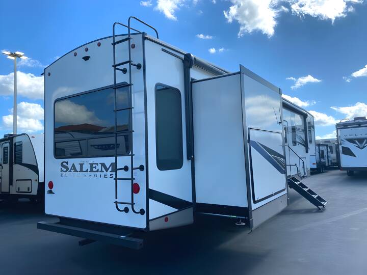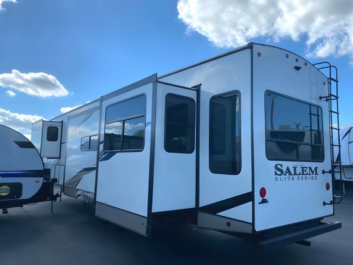2023 SALEM HEMISPHERE ELITE Salem Hemisphere Elite, 35RE, Fifth Wheel, Air Conditioning (BTUs) (15000),Air Conditioning (Standard),Air Conditioning Prewiring (Prewiring) (Yes),Air Conditioning Type (Automatic),Awning (Standard),Awning Length (ft) (29),Awning Length (m) (8.8),Back-Up Camera (Prewiring) (Yes),Bathroom (Standard),Bathroom Flooring Type (Vinyl),Bathroom Location (Center),Bathroom Medicine Cabinet (Standard),Bathroom Medicine Cabinet Location (Center),Bathroom Mirror (Standard),Bathroom Mirror Location (Center),Bathroom Sink (Standard),Bathroom Sink Location (Center),Bathroom Vent / Fan System (Standard),Bathroom Vent / Fan System Location (Center),Battery (Standard),Battery Power Converter (Yes),Bed Spreads (Standard),Beds (Standard),Black Water Holding Tank Gauge (Standard),Bluetooth® Audio (Yes),Body Material (Aluminum),Brakes (Standard),CD Player (Standard),Cable Prewiring (Prewiring) (Yes),Carbon Monoxide Detector (Standard),Ceiling Fan (Standard),Construction (Standard),Curtains / Shades (Standard),DVD Player (Standard),Door Type (Plastic / Glass),Doors (Standard),Emergency Exit(s) (Standard),Exterior Entertainment System (Standard),Exterior Flood Lights (Standard),Exterior Kitchen (Standard),Exterior Ladder (Standard),Exterior Plugs (Standard),Exterior Shower (Standard),Fireplace (Standard),Freeze Proof Insulation (Standard),Fresh Water Holding Tank Gauge (Standard),Front Brake Type (Not Applicable),Full Size Master Bedroom Closet (Yes),Gray Water Holding Tank Gauge (Standard),Ground Fault Plugs (Standard),Heat Prewiring (Prewiring) (Yes),Heater (BTUs) (30000),Heater (Standard),Heater Type (Automatic),Interior Decor (Standard),Interior Wood Finish (Yes),Kitchen / Living Area (Standard),Kitchen / Living Area Flooring Type (Carpet / Vinyl),Kitchen Location (Center),Kitchen Table Configuration (Counter / Island),Layout (Oven / Stove),Leveling Jack Type (Front Power / Rear Power),Leveling Jacks (Standard),Living Area Location (Rear),Master Bedroom (Standard),Master Bedroom Door Style (Full Sliding Door),Master Bedroom Flooring Type (Carpet / Vinyl),Master Bedroom Location (Front),Master Bedroom Mirror Doors (Yes),Master Bedroom Shades / Curtains (Yes),Material (Cloth),Max Sleeping Count (4),Microwave Oven (Standard),Number Of Bathrooms (1),Number Of Convertible / Sofa Beds (1),Number Of Discs (1),Number Of Emergency Exits (1),Number Of King Size Beds (1),Number Of Oven Burners (3),Number Of Radios (1),Number Of Recliner / Rockers (2),Number Of Sofas (1),Number Of Televisions (2),Number of Awnings (2),Number of Doors (1),Number of Slideouts (4),Oven / Stove (Standard),Overhead Fan (Yes),Paint (Standard),Pass-Thru Storage (Standard),Power Retractable Awning (Yes),Power Retractable Slideout (Yes),Power Vent Fan (Standard),Prewiring (Prewiring) (Standard),Propane Alarm (Standard),Propane Tank Gauge (Standard),Radio (Standard),Rear Brake Type (Electric Drum),Rear Bumper Drain Hose Carrier (Standard),Rear Hitch (Standard),Rear Hitch Typ