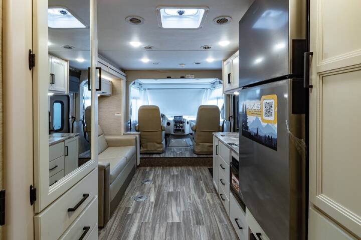 MSRP $168,611. New 2023 Thor Motor Coach Axis RUV Model 25.7. This RV measures approximately 26 feet 9 inches in length and features a drop-down overhead loft, slide-out and a bedroom TV. The Axis also features the new Ford E-Series chassis with a 7.3L V-8 engine and a six speed automatic transmission. This beautiful RV features the optional 100W solar charging system with power controller, electric stabilizing system, and heated holding tanks with heat pads. The Axis also boasts an impressive list of standard features including the Winegard Connect 2.0 WiFi, rotary battery disconnect switch, adjustable shelving bracketry, BM Pro Multiplex system, power privacy shade on windshield, tankless water heater, touchscreen radio that features navigation and back-up monitor, frameless windows, heated remote exterior mirrors with integrated sideview cameras, lateral power patio awning with integrated LED lighting and much more. For additional details on this unit and our entire inventory including brochures, window sticker, videos, photos, reviews & testimonials as well as additional information about Motor Home Specialist and our manufacturers please visit us at MHSRV.com or call 800-335-6054. At Motor Home Specialist, we DO NOT charge any prep or orientation fees like you will find at other dealerships. All sale prices include a 200-point inspection, interior & exterior wash, detail service and a fully automated high-pressure rain booth test and coach wash that is a standout service unlike that of any other in the industry. You will also receive a thorough coach orientation with an MHSRV technician, a night stay in our delivery park featuring landscaped and covered pads with full hook-ups and much more! Read Thousands upon Thousands of 5-Star Reviews at MHSRV.com and See What They Had to Say About Their Experience at Motor Home Specialist. WHY PAY MORE? WHY SETTLE FOR LESS?