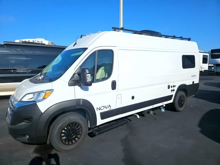 2024 COACHMEN NOVA, 20C, Class B, Air Conditioning (BTUs) (13500),Air Conditioning (Standard),Air Conditioning Prewiring (Prewiring) (Yes),Air Conditioning Type (Automatic),Anti-Lock Brakes (Standard),Awning (Standard),Awning Length (ft) (13.1),Awning Length (m) (4),Bathroom (Standard),Bathroom Flooring Type (Vinyl),Bathroom Location (Center),Bathroom Mirror (Standard),Bathroom Mirror Location (Center),Bathroom Sink (Standard),Bathroom Sink Location (Center),Battery (Standard),Battery Power Converter (Yes),Beds (Standard),Black Water Holding Tank Gauge (Standard),Body Material (Aluminum),Brakes (Standard),Cable Prewiring (Prewiring) (Yes),Carbon Monoxide Detector (Standard),Carburetion (Standard),Carburetion Type (Fuel Injected),Chassis Brand (ProMaster™),Chassis Model (3500),Construction (Standard),Cruise Control (Standard),Curtains / Shades (Standard),Cylinders (6),Displacement (l) (3.6),Door Type (Curtain),Doors (Standard),Emergency Exit(s) (Standard),Engine (Standard),Engine Brand Name (Pentastar™ VVT),Engine Type (V6),Exterior Ladder (Standard),Freeze Proof Insulation (Optional),Fresh Water Holding Tank Gauge (Standard),Front Brake Type (Hydraulic Disc),Front Windshield Shade (Standard),Fuel Requirements (Regular),Fuel Type (Gas),Generator (Standard),Gray Water Holding Tank Gauge (Standard),Ground Fault Plugs (Standard),Heat Prewiring (Prewiring) (Yes),Heater (Standard),Heater Type (Automatic),Horsepower (bhp) (280),Horsepower (kW) (208.9),Horsepower RPM (6400),Interior Decor (Standard),Interior Wood Finish (Yes),Kitchen / Living Area (Standard),Kitchen / Living Area Flooring Type (Vinyl),Kitchen Location (Center),Kitchen Table Configuration (Pedestal Table),Layout (Stove),Living Area Location (Rear),Max Sleeping Count (2),Microwave Oven (Standard),Mobile App Instrumentation (Yes),Number Of Bathrooms (1),Number Of Convertible / Sofa Beds (1),Number Of Emergency Exits (1),Number Of Oven Burners (2),Number Of Radios (1),Number Of Rows (1),Number Of Seats (2),Number Of Sofas (3),Number Of Speeds (6),Number Of Televisions (1),Number of Awnings (1),Number of Doors (1),Other Electrical (Optional),Oven / Stove (Standard),Overdrive (Yes),Paint (Standard),Power Retractable Awning (Yes),Power Vent Fan (Standard),Power Windows (Standard),Prewiring (Prewiring) (Standard),Propane Alarm (Standard),Propane Tank Gauge (Standard),Radio (Standard),Rear Brake Type (Hydraulic Disc),Rear Hitch (Standard),Rear Hitch Type (Receiver),Reclining Seats (Yes),Refrigerator (Standard),Refrigerator Power Mode (Electric),Refrigerator Size (Mid-Size),Retractable Roof Antenna (Standard),Roof Vents (Standard),Satellite (Yes),Seat (Standard),Seat Armrests (Yes),Seat Material (Cloth),Seat Specifications (Standard),Seat Type (Bucket),Shower (Standard),Shower Location (Center),Sidewall Construction (Fiberglass),Sink / Faucet (Standard),Sink Cover / Cutting Boards (Standard),Smoke Detector (Standard),Sofa (Standard),Sofa Material (Cloth),Solar (Prewiring) (Yes),Solar B