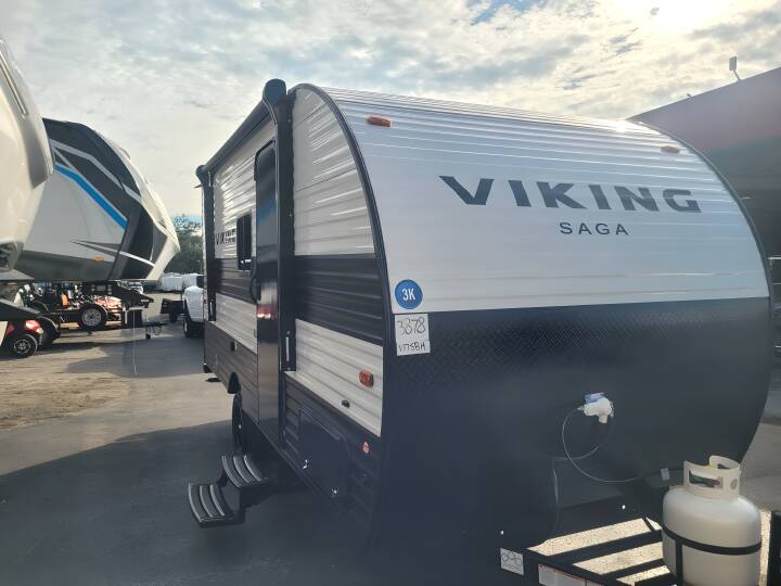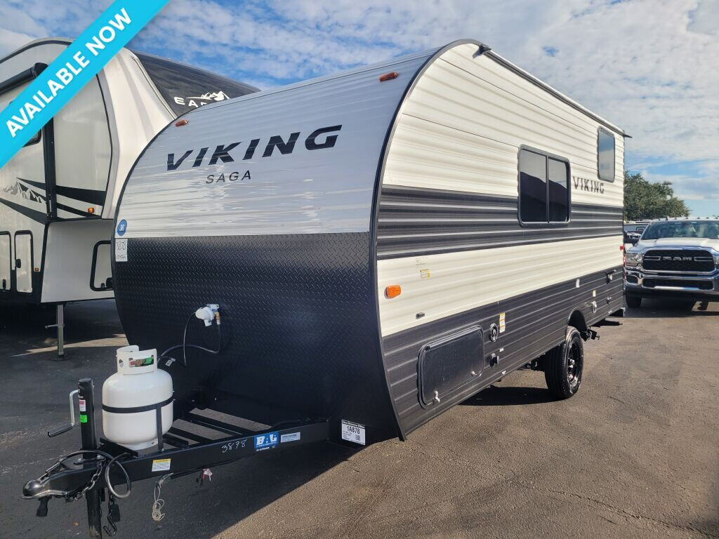 2024 COACHMEN VIKING, 17SBHSAGA, Travel Trailer, Air Conditioning (BTUs) (13500),Air Conditioning (Standard),Air Conditioning Prewiring (Prewiring) (Yes),Air Conditioning Type (Automatic),Awning (Standard),Awning Length (ft) (12),Awning Length (m) (3.7),Back-Up Camera (Prewiring) (Yes),Bathroom (Standard),Bathroom Flooring Type (Vinyl),Bathroom Location (Rear),Bathroom Vent / Fan System (Standard),Bathroom Vent / Fan System Location (Rear),Bathtub (Standard),Bathtub Location (Rear),Battery (Standard),Battery Power Converter (Yes),Beds (Standard),Black Water Holding Tank Gauge (Standard),Bluetooth® Audio (Yes),Body Material (Aluminum),Brakes (Standard),Bunkhouse (Yes),Cable Prewiring (Prewiring) (Yes),Carbon Monoxide Detector (Standard),Construction (Standard),Curtains / Shades (Standard),Door Type (Curtain),Doors (Standard),Emergency Exit(s) (Standard),Exterior Flood Lights (Standard),Exterior Plugs (Standard),Fresh Water Holding Tank Gauge (Standard),Front Brake Type (Not Applicable),Gray Water Holding Tank Gauge (Standard),Ground Fault Plugs (Standard),Heat Prewiring (Prewiring) (Yes),Heater (BTUs) (20000),Heater (Standard),Heater Type (Automatic),Interior Decor (Standard),Interior Wood Finish (Yes),Kitchen / Living Area (Standard),Kitchen / Living Area Flooring Type (Vinyl),Kitchen Location (Center),Kitchen Table Configuration (Bench Seats),Layout (Stove),Leveling Jack Type (Rear Manual),Leveling Jacks (Standard),Living Area Location (Center),Max Sleeping Count (6),Microwave Oven (Optional),Mobile App Instrumentation (Yes),Number Of Bathrooms (1),Number Of Bunk Beds (2),Number Of Convertible / Sofa Beds (1),Number Of Emergency Exits (1),Number Of Full Size Beds (1),Number Of Oven Burners (2),Number Of Radios (1),Number of Awnings (1),Number of Doors (1),Oven / Stove (Standard),Overhead Fan (Yes),Paint (Standard),Pass-Thru Storage (Standard),Power Retractable Awning (Yes),Prewiring (Prewiring) (Standard),Propane Alarm (Standard),Radio (Standard),Rear Brake Type (Electric Drum),Rear Bumper Drain Hose Carrier (Standard),Refrigerator (Standard),Refrigerator Power Mode (Electric),Refrigerator Size (Compact),Retractable Roof Antenna (Standard),Roof Vents (Standard),Satellite Prewiring (Prewiring) (Yes),Shower (Standard),Shower Location (Rear),Sidewall Construction (Aluminum),Sink / Faucet (Standard),Sky Light (Standard),Smoke Detector (Standard),Solar (Prewiring) (Yes),Speaker Location(s) (Interior),Speakers (Standard),Toilet (Standard),Toilet Location (Rear),Toilet Type (Plastic),Wallpaper (Yes),Water Heater Pump Power Mode (Electrical / Propane),Water Heater Tank (Standard),Water Heater Tank Capacity (g) (6),Water Heater Tank Capacity (l) (22.7),Wireless / Connectivity (Standard), ,