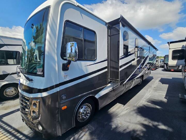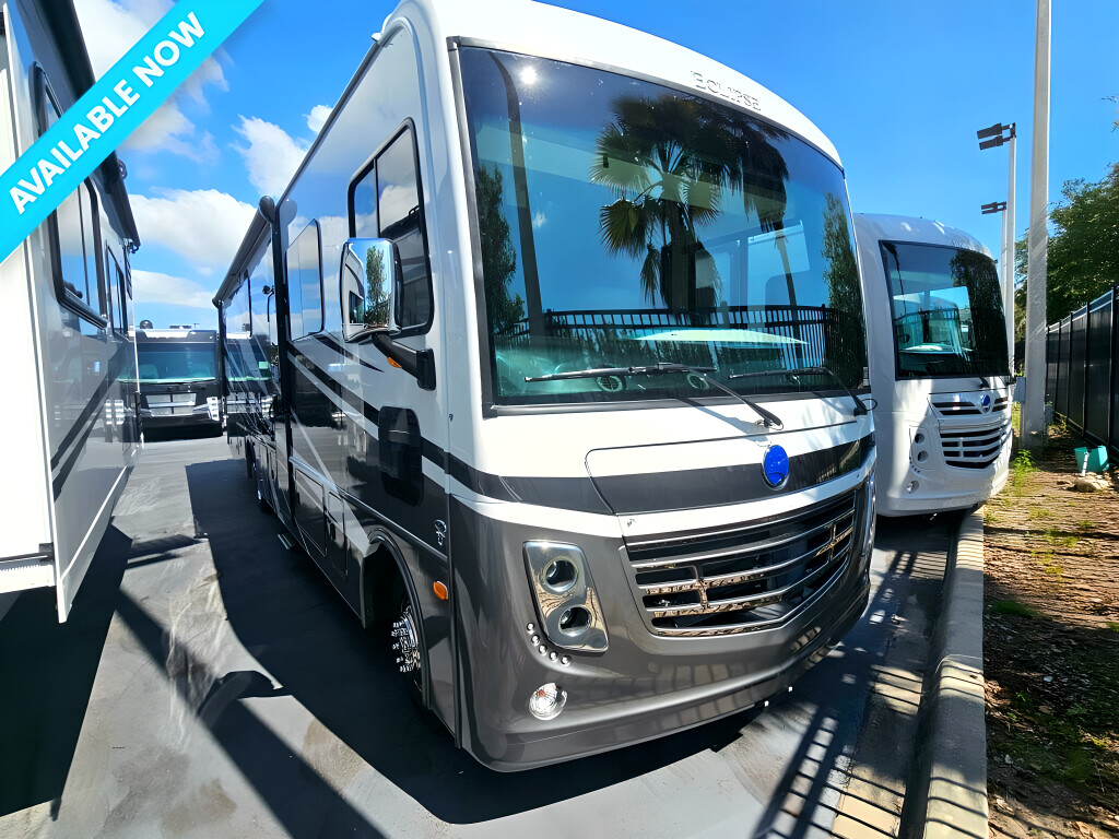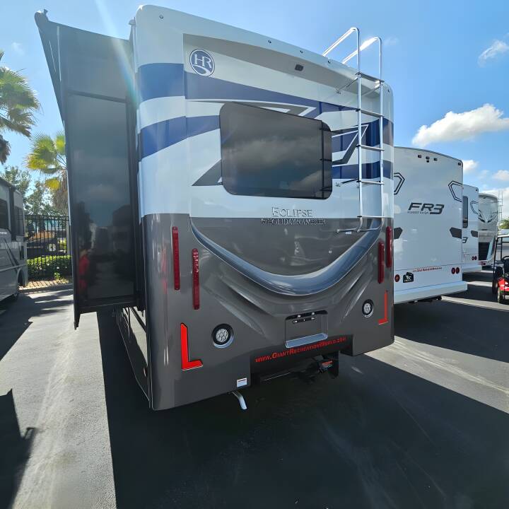 2024 HOLIDAY RAMBLER Eclipse, 34J, Class A Gas, Air Conditioning (BTUs) (27000),Air Conditioning (Standard),Air Conditioning Prewiring (Prewiring) (Yes),Air Conditioning Type (Automatic),Anti-Lock Brakes (Standard),Awning (Standard),Awning Length (ft) (22),Awning Length (m) (6.7),Back-Up Camera (Prewiring) (Yes),Bathroom (Standard),Bathroom Flooring Type (Vinyl),Bathroom Location (Center),Bathroom Medicine Cabinet (Standard),Bathroom Medicine Cabinet Location (Center),Bathroom Mirror (Standard),Bathroom Mirror Location (Center),Bathroom Sink (Standard),Bathroom Sink Location (Center),Bathroom Vent / Fan System (Standard),Bathroom Vent / Fan System Location (Center),Battery (Standard),Battery Converter Amps (55),Battery Power Converter (Yes),Bed Spreads (Standard),Beds (Standard),Black Water Holding Tank Gauge (Standard),Bluetooth® Audio (Yes),Body Material (Aluminum),Brakes (Standard),Bunkhouse (Yes),CD Player (Standard),Cable Prewiring (Prewiring) (Yes),Carbon Monoxide Detector (Standard),Carburetion (Standard),Carburetion Type (Fuel Injected),Chassis Brand (Ford),Chassis Model (F53),Construction (Standard),Cruise Control (Standard),Curtains / Shades (Standard),Cylinders (8),DVD Player (Standard),Displacement (l) (7.3),Door Type (Plastic / Glass),Doors (Standard),Emergency Exit(s) (Standard),Engine (Standard),Engine Type (V8),Exterior Entertainment System (Standard),Exterior Flood Lights (Standard),Exterior Kitchen (Standard),Exterior Ladder (Standard),Exterior Plugs (Standard),Exterior Shower (Standard),Freeze Proof Insulation (Standard),Fresh Water Holding Tank Gauge (Standard),Front Brake Type (Hydraulic Disc),Front Windshield Shade (Standard),Fuel Requirements (Regular),Fuel Type (Gas),Full Size Master Bedroom Closet (Yes),Generator (Standard),Gray Water Holding Tank Gauge (Standard),Ground Fault Plugs (Standard),Heat Prewiring (Prewiring) (Yes),Heater (BTUs) (34000),Heater (Standard),Heater Type (Automatic),Horsepower (bhp) (335),Horsepower (kW) (250),Horsepower RPM (3750),Interior Decor (Standard),Interior Wood Finish (Yes),Kitchen / Living Area (Standard),Kitchen / Living Area Flooring Type (Vinyl),Kitchen Location (Center),Kitchen Table Configuration (Bench Seats),Layout (Oven / Stove),Leveling Jack Type (Front Power / Rear Power),Leveling Jacks (Standard),Living Area Location (Front),Master Bedroom (Standard),Master Bedroom Door Style (Full Sliding Door),Master Bedroom Flooring Type (Vinyl),Master Bedroom Location (Rear),Master Bedroom Mirror Doors (Yes),Master Bedroom Shades / Curtains (Yes),Max Sleeping Count (10),Microwave (Yes),Microwave Oven (Standard),Number Of Bathrooms (1),Number Of Bunk Beds (2),Number Of Convertible / Sofa Beds (2),Number Of Discs (1),Number Of Emergency Exits (1),Number Of King Size Beds (1),Number Of Oven Burners (3),Number Of Queen Size Beds (1),Number Of Radios (1),Number Of Rows (1),Number Of Seats (2),Number Of Sofas (1),Number Of Speeds (6),Number Of Televisions (4),Number of Awnings (1),Number of Door